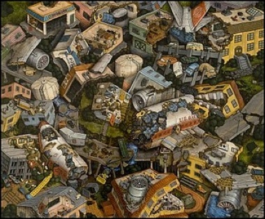 American Entropy: 747, 2009; acrylic on panel. Courtesy of the Artist and Peanut Gallery, San Francisco.
