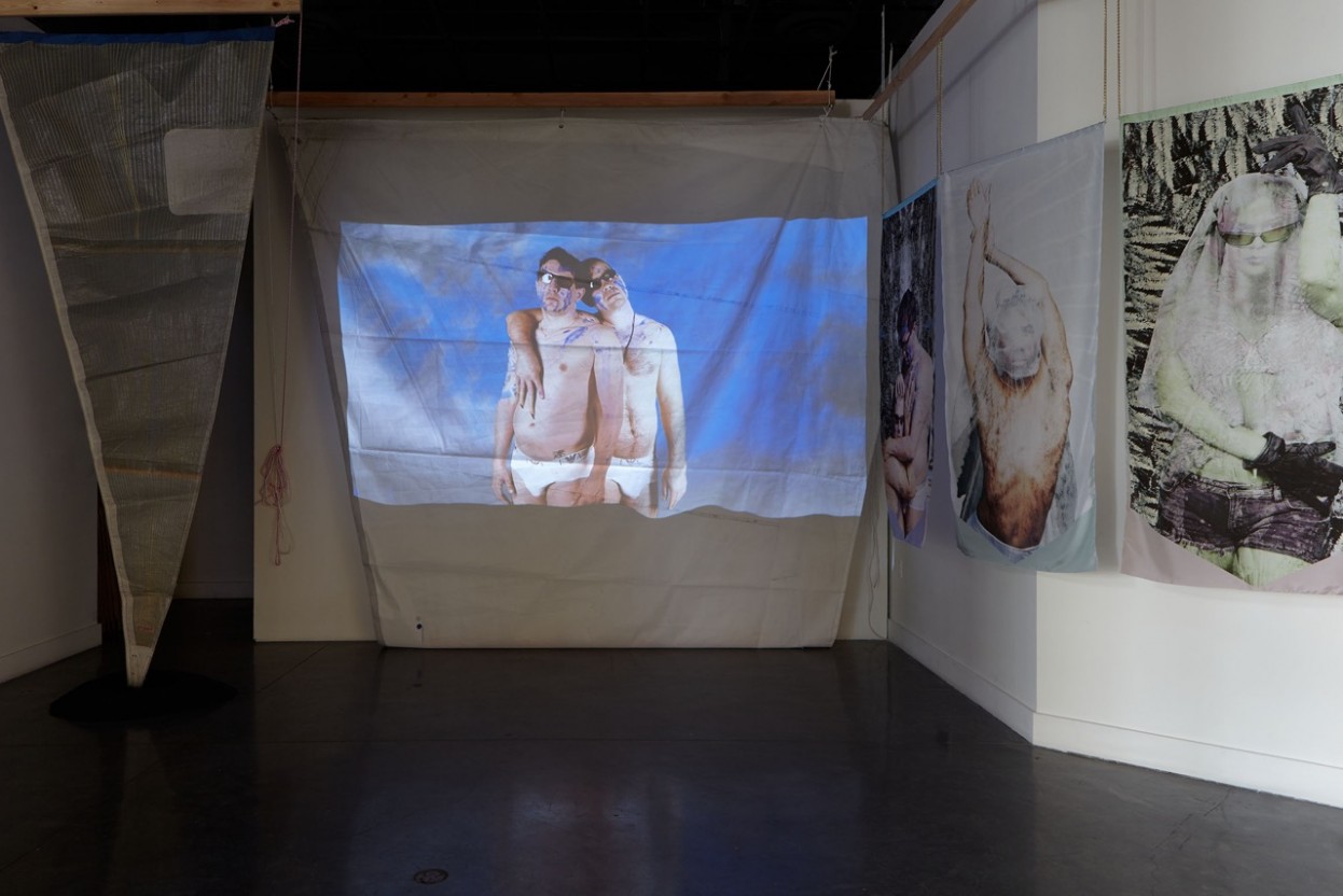 Córdova evocatively suggests water as both a transportation mode and a barrier that defines borders and separates people. In the gallery, Córdova's draped sails divide the space and serve as her projection screen. The sails also act like relics of imaginary journeys, suggested but not actually depicted in the videos. The videos begin with a computer-generated ship on the ocean that falls to the sea floor and breaks apart, signaling a disaster that loosely frames the rest of the video's narrative.