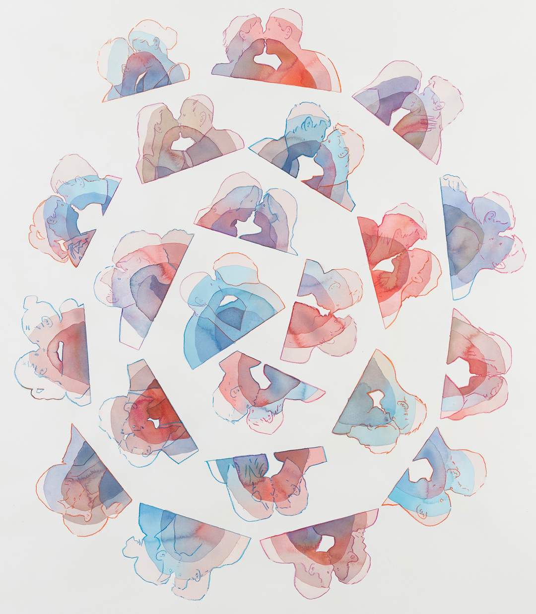 Dan Gluibizzi. 22 couples kissing, 2019; watercolor, acrylic and colored pencil on paper; 50 x 42 inches. Courtesy of the artist and Russo Lee Gallery, Portland, OR.