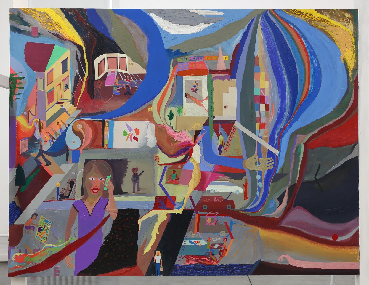 Chris Johanson, The Big Picture Escapes Me, 2015. Acrylic on found wood. 162.6 x 213.4 cm. Courtesy of the Artist and Altman Siegel