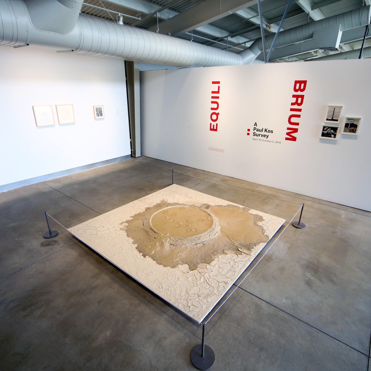 April 16 - October 2, 2016 Solo ShowWalking into Equilibrium—a fascinating survey of work by Bay Area conceptual artist Paul Kos at Napa’s di Rosa—a viewer is immediately confronted with Condensation of Yellowstone Park Into 64 Square Feet (1969/2016), a re-creation of a piece Kos showed in Tom Marioni’s misleadingly titled conceptual art exhibition The Return of Abstract Expressionism (1969). The piece comprises a flat white board on the floor covered in a mud crater whose bubbling sulfur core sends droplets of mud flying toward its edges. It’s an imitation of a geothermal feature from Yellowstone National Park, an ultra-mimesis whose pops and splashes arguably capture the experience of such terrain more than the most realistic painting could, even as they allude to the pigment-dripping methods of a Pollock.