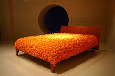 Chen Hui-chiao. Here and Now: Winter, 2009; double bed, table-tennis balls, and beads. Courtesy of the artist.