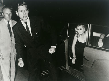 Tazio Secchiaroli. Anita Ekberg and Husband Anthony Steel, Vecchia Roma, 1958; gelatin silver print; 11 11/16 x 14 5/8 in. Courtesy of SFMOMA, Accessions Committee Fund purchase. © Tazio Secchiaroli/David Secchiaroli.