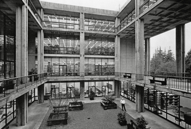 The culmination of the original Fiat Lux publication was overshadowed by the 1967 dismissal of Kerr, a symptom of rising conservatism within the Board of Regents in response to the campus protests of the previous years. In contrast to this volatile moment in California history, Adams’s images are placid and almost sublime. The photographer created this majestic portrait of the UC system as it was rapidly expanding, yet he did so without capturing much of what is generally associated with the university experience: classes in session, campus life, and spontaneous conversation. The images in Fiat Lux Redux are stiff and orchestrated, even more so for the dramatic lighting and high-contrast crispness of the prints. Adams was under contractual obligation to emphasize the UC schools as a single entity, a warm and sensitive institution that performs outstanding public service to the people of California. Strange, then, that his images are so devoid of people.