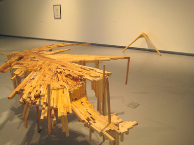 August 1, 2011Mouthing (The Sentient Limb), a group show at Chicago’s Hyde Park Art Center, strives to utilize the phenomenological potential of art, the place where knowledge and awareness are experienced through sensory perception rather than objective inquiry. Organized around the idea of the “phantom limb,” a phrase used to describe lingering sensation from an amputated appendage, curator Kelly Kaczynski’s attempt to create a high-minded, sensually rich investigation into the mysterious corners of psychic dissonance is grossly underserved by the art presented. From piece to piece, I found it difficult to meet the artists on their terms and experience the work as it was intended.