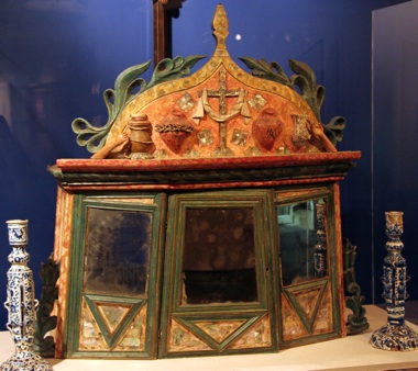 Unknown. Chumash Tabernacle; c. 1790, wood, mirror, and abalone shell, collection of the Mission Santa Barbara. Courtesy of the Thacher Gallery, University of San Francisco.