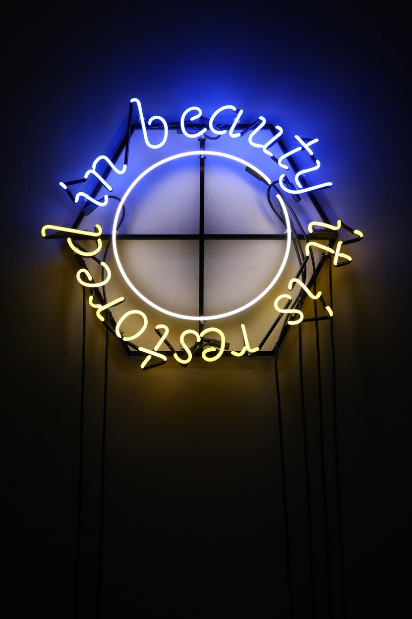 Demian DinéYazhi´. in beauty it is restored, 2018; neon. Courtesy of Henry Art Gallery. Photo: Pavel Verbovski.