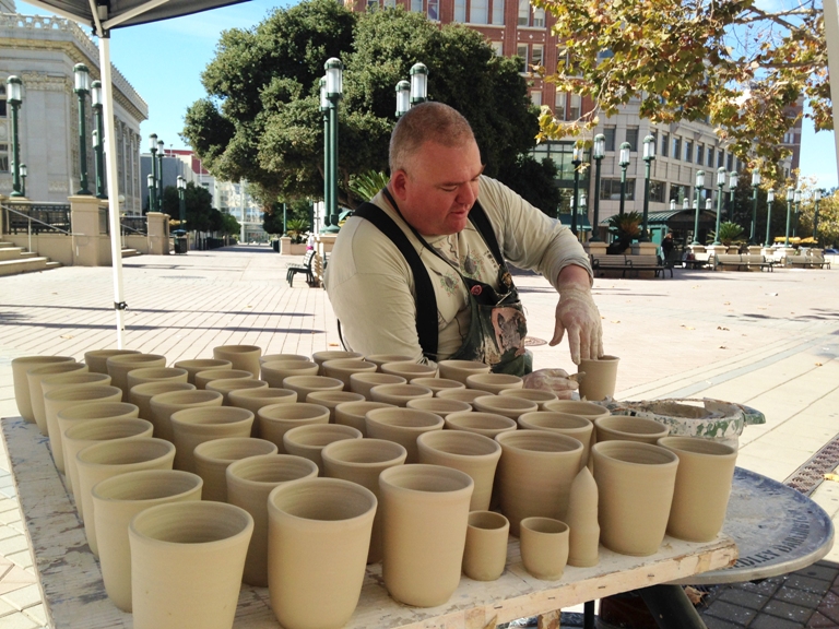 Ehren Tool’s cup-throwing demonstration; Frank Ogawa Plaza, Saturday, Oct. 11, 2014; Pro Arts Gallery, Oakland, California. Courtesy of the Artist and Pro Arts Gallery. Photo: Amanda N. Simons.