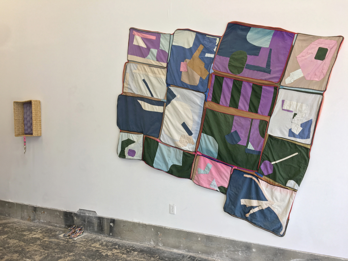 Falling under Howard Risatti’s taxonomy of craft as a set of objects and materials defined as “containers, coverings, and supports,"2 most of the objects in Opening a Can share formal and material associations with items that are intended to serve and protect the human body. Blankets, slippers, and mirrors, and the materials these objects are made of (textiles, clay, and glass), are often affiliated with human physiological needs and domestic space. However, instead of serving the body, the works in Opening a Can call to mind notions about the transitory nature of the human condition, without visualizing the human figure at all. When shown together, Dart-McLean, Jackson, and Ritter’s works evoke an absent body made present through strategic positioning, encoded materials, and not-quite usable forms. Often, the absent body (or bodies) appeared to walk in tandem with my own.