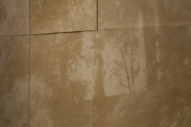 Imagining the sudden, devastating reality of losing everything, Taro Hattori realized how much he relies on physical surroundings for his sense of identity. Everything I Could Lose (2012) is a forty-five-minute video slideshow documenting each of his possessions: books, CDs, computers, photographs, chopsticks, crockery. Each item is shot unpretentiously on a desk surface, and each frame passes in the blink of an eye. The cumulative effect is a revealing portrait of the artist at a precise moment in time. Systematic and detached, it nevertheless conveys enormous empathy for the sufferers of the Japanese earthquake. Kelli Yon’s mnemonic study #1 (2012), a bichromate gum photograph on mulberry paper, has faded dramatically since its installation. It is an image of Yon’s young daughter—her hair and dress blown by the wind—running down the steps of a luxuriant garden. The single image is printed across nine unmounted, fluttering sheets, which create a fractured effect. Yon’s choices of medium, technique, and subject echo the losses inherent in the photos from Japan. She captures a transitory moment, infused with love, in an ephemeral medium that is destined to change and disappear.