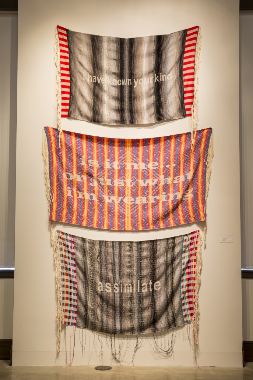Vic De La Rosa. Top to bottom: Numero Nueve, 2013; Numero Cinco, 2002; Numero Diez, 2013; mixed fiber. Courtesy of the Artist. Photo: Scott Chernis.