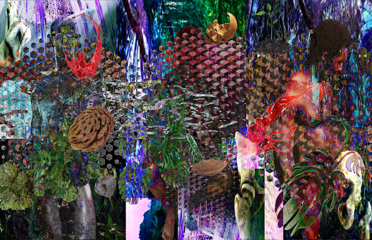 Richard-Jonathan Nelson. Digital construction for Dayclean come and these bones are still weary., 2019. Dye sublimation print on satin, 162 x 108 in. Courtesy the artist.