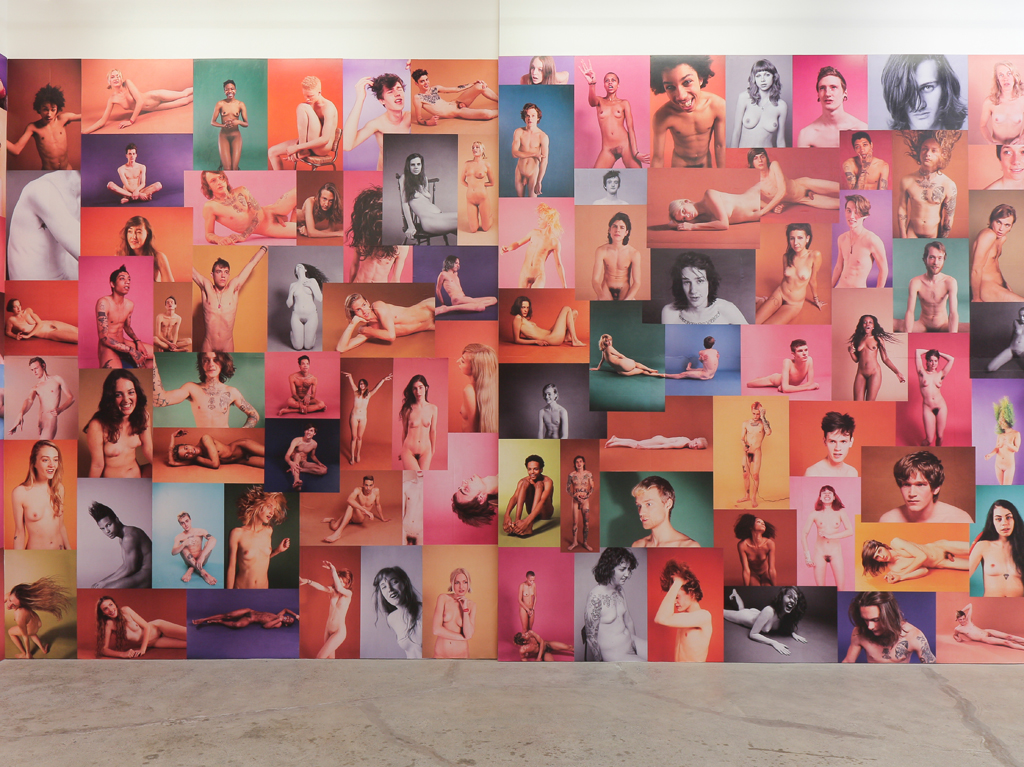 September 6 - October 20, 2013For his latest project, YEARBOOK (2013), Ryan McGinley has wallpapered the interior of Ratio 3 from floor to ceiling with latex Inkjet studio portraits of nude youth, all on poster-size paper and mostly in color. The result makes for an oppressive and chaotic visual experience. McGinley first started making studio portraits in 2009 as a way of auditioning young models to appear in his photographs. The resulting images marked a stylistic departure from the depictions of youth romping through pastoral settings depicted in McGinley’s better-known work. With their moody grays and spare, minimal quality, these 2009 portraits were used by the artist to establish his own aesthetic within the lineage of photographic portraiture.