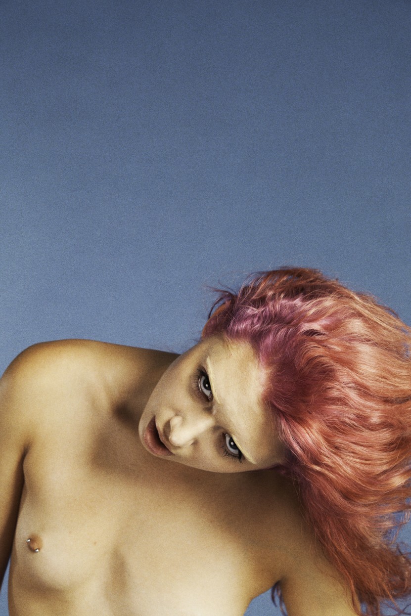 In YEARBOOK, the current iteration of McGinley’s exploration of studio portraiture tropes, his subjects pose in front of candy-colored backdrops, performing for the camera with a nonchalance bred from the comfort and familiarity that emerges through sessions that typically involve hundreds of shots of each model. McGinley closely crops his images around the lithe, often tattooed and pierced bodies of his ambivalent and irreverent subjects, recalling both Neil Winokur’s life-size, deadpan studio portraits made with a large-format view camera starting in the 1980s and Andy Warhol’s 1960s series of silent film portraits, Screen Tests. If the experience of viewing portrait photography is typically characterized by a heightened sense of one’s own voyeurism, then McGinley’s campy, immersive installation amplifies this self-awareness of looking, underscoring contemporary pop culture’s pervasive fetishization of youth. The artist’s compulsive attention to his subject, mirrored in YEARBOOK’s installation, perpetuates this fixation. Overall, one leaves the gallery with an uneasy feeling; McGinley’s subjects, on the other hand, clearly seem to be having more fun.