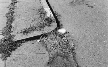 However, in an almost reverse gesture, the gelatin silver print Can elevates the insignificant to totemic. A discarded soda can resting at the corner of a weed-choked curb catches the light and becomes a glowing, ethereal object, intended to be overlooked by all except those who might understand its potency—in other words, a magic object. Similarly, in The Floor, a plastic googly eye stares up from the matted carpet on which it lays, as the unnoticed observer that sees all. Can and The Floor are intersecting points in the show’s constellation of images, transferring their power to a viewer. Because the viewer is the only person fully visible in the room, she becomes the omnipotent presence that designates what is significant. These images also interject a sense of whimsy, alleviating any melancholic contemplation on the inevitability of loss.
