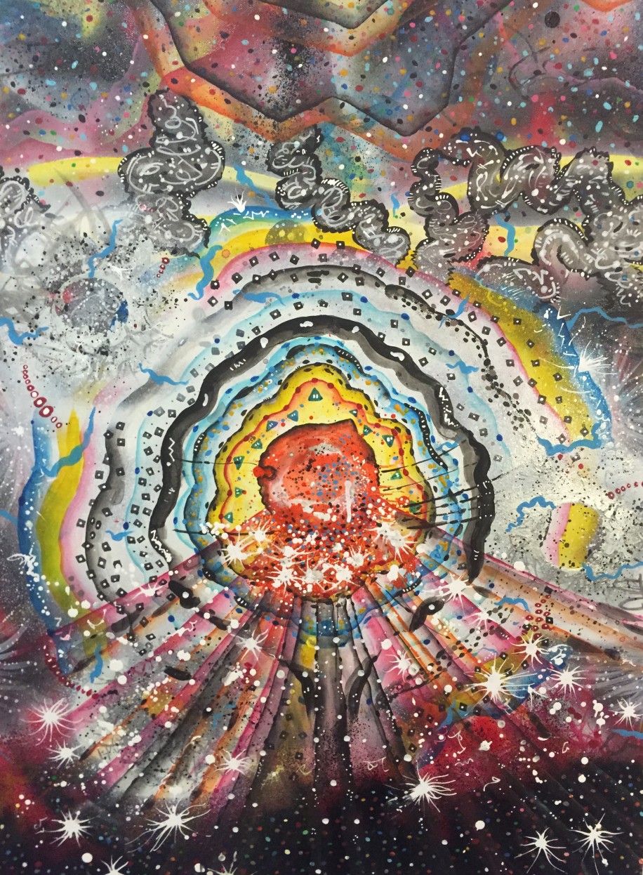 Brian Lucas. Seventh Sense, 2015; mixed media on canvas; 36 x24 in. Courtesy of the Artist and Art@Archer, Oakland. Photo: Garrett Caples.