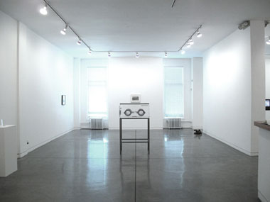 When I’ve seen Mitzi Peterson’s formal, slight constructions before, I found them meticulous but unmemorable. Here, however, her two sculptures are scrupulous, minimally worked capsules of equilibrium and tension. There is a pleasant, ironic elegance in how the materials are manipulated, and yet their mundane identities—such as a doorframe stop or a standard length of one-by-one-inch hardwood—are completely unaltered. This formal leap in Bechtle’s fascination with the ordinary is gratifying.