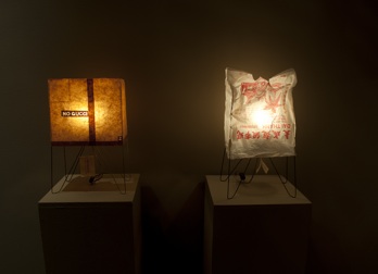 No Gucci Lanterns 2 & 3 (Paper or Plastic?), 2005; mixed media. Collection of Ralph and Sheila Pickett. Photo: Kathryn Hetzner.