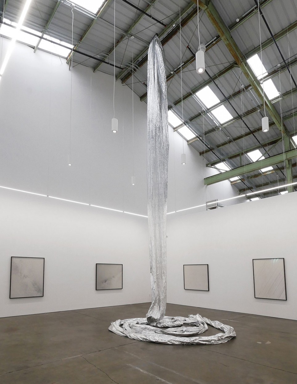 Trevor Paglen. Orbital Reflector (Scale Model), 2018; mylar, aluminum, solar panels, and tape; 1200 x 60 in. Courtesy of the Artist and Altman Siegel.