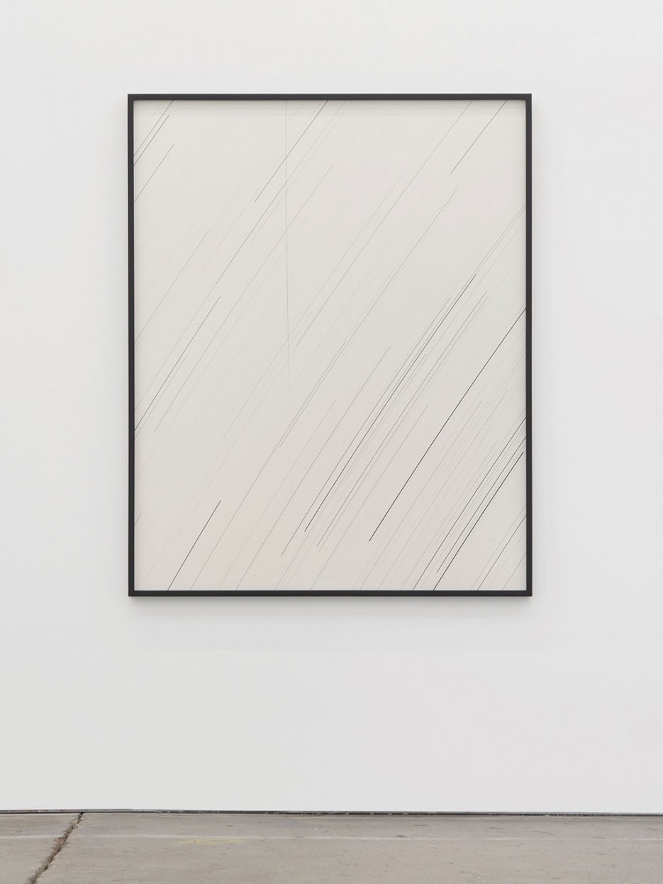 Unlike the rest of the more than 1,400 satellites now orbiting the earth, Orbital Reflector is conceived of as an object to be viewed. The sculptures suspended from the ceiling at Altman Siegel are satellite prototypes. Their inflectionless surfaces are chromed or lacquered white; one is shaped like a truncated pyramid, another like a torus, and a third like intersecting discs. The drawings on display are likewise artifacts of the research process. Some are made on German drafting paper, others on sketchbook pages; all are floated under glass to show off the paper’s raw edge.