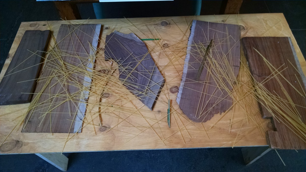 Veronica De Jesus, Something Dark, 2015; oak, walnut, almond (luminous wood), spaghetti. Courtesy of the Artist. Photo: Matt Sussman.